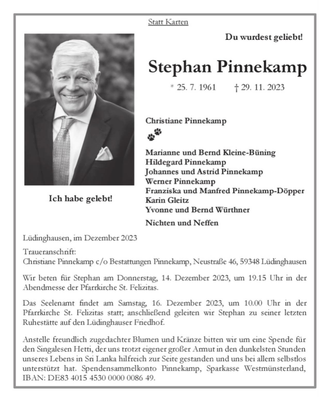 - 2023 verstirbt Stephan Pinnekamp bei einem Urlaub in Sri Lanka. Seine Frau Christiane Pinnekamp übernimmt die Firma.